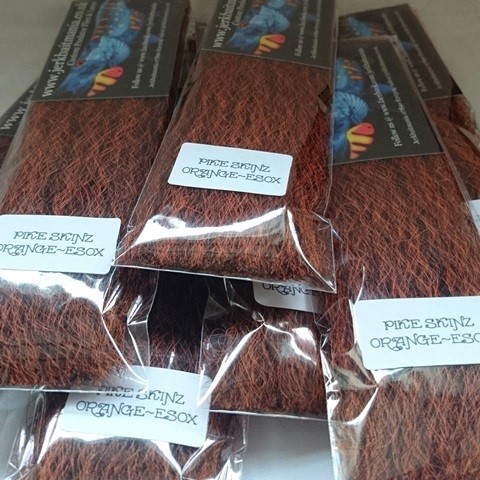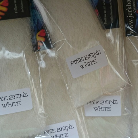 Jerkbaitmania Pike Skinz Fibre is the Custom Esox blend we use in our own Custom Predator Flies. Simply the best Esox Fibre you'll ever find in a fantastic range of colours.. Ideal for Pike and Musky flies.. Tie on its own or add your own blends from our range.